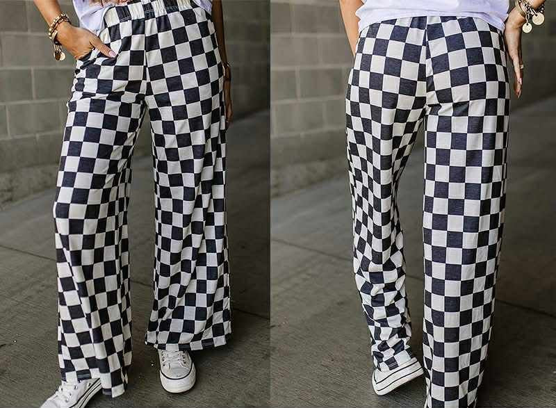 Checkered Wide Leg Pants