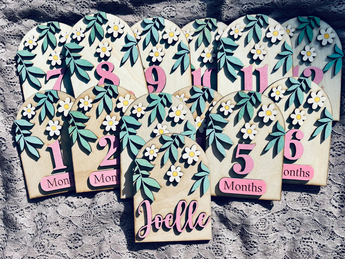 ♥ Includes 12 Engraved Monthly Milestone Markers + 1 Personalized Disc with Child's Name